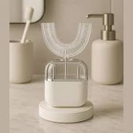 Beyaz U Tipi Otomatik Elektrikli Diş Fırçası 360° Silikon Başlık Şarjlı Yetişkin Model